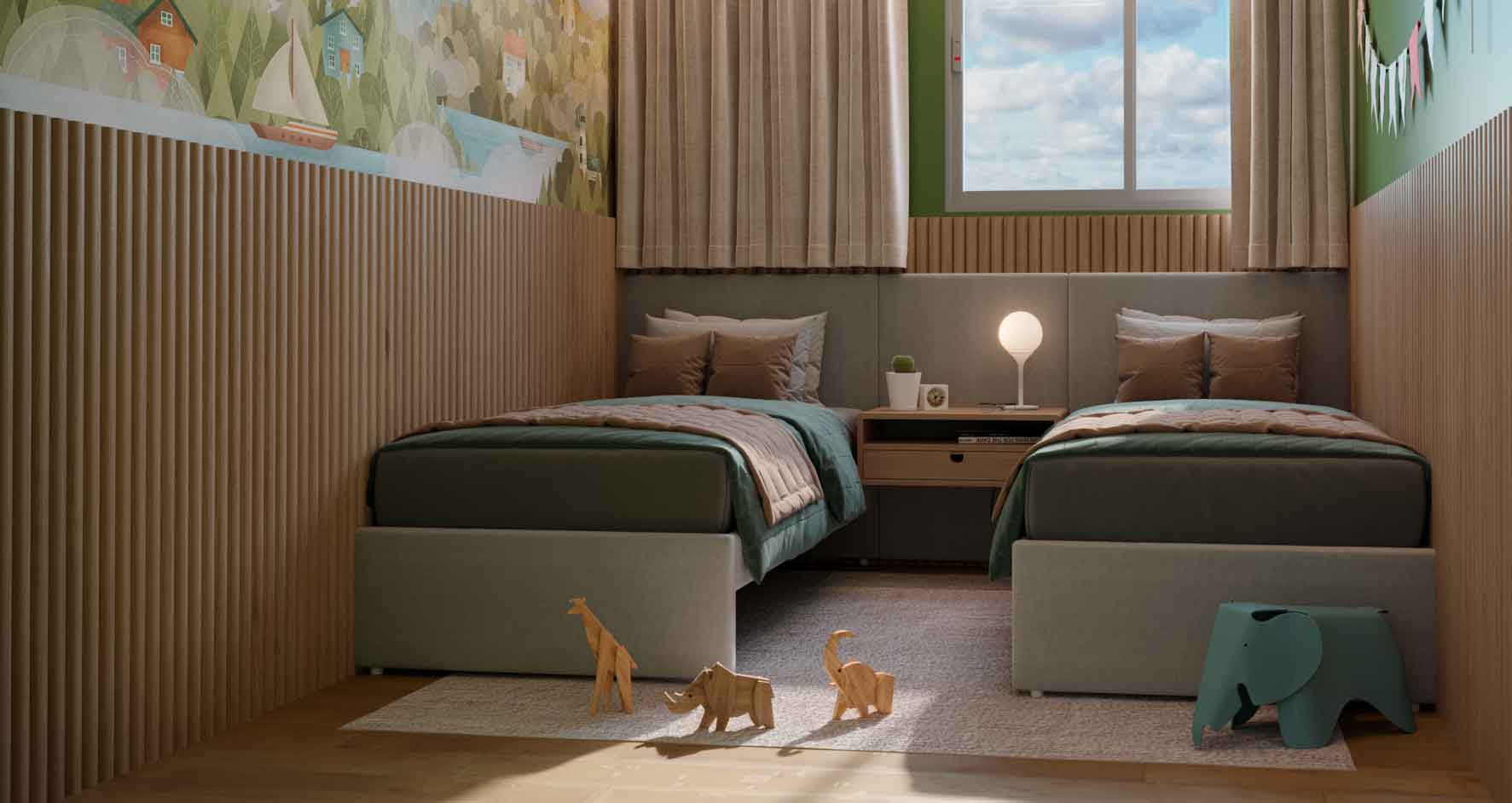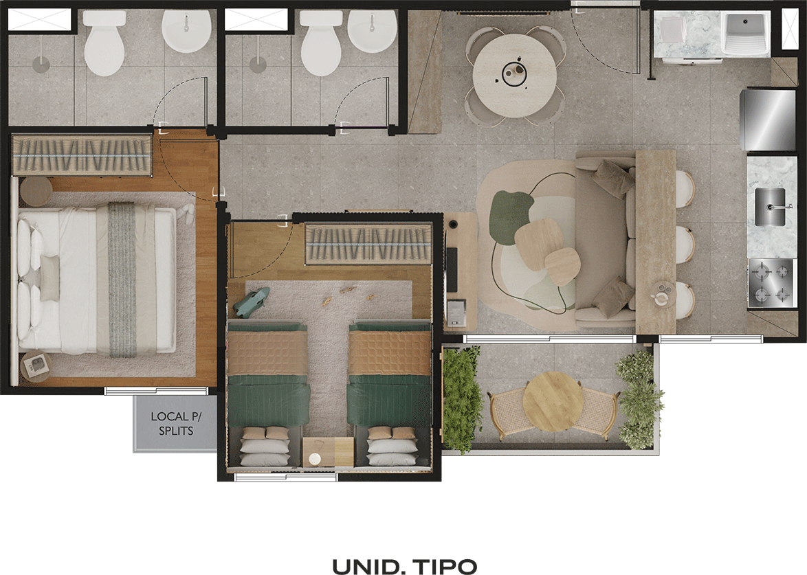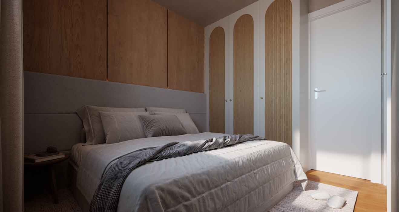 • 2 quartos, sendo 1 suíte