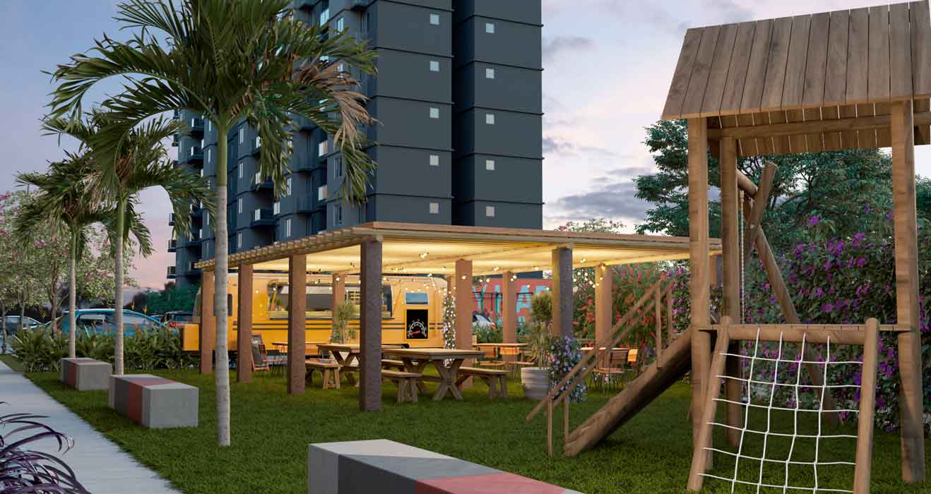 • Praça gastrô com local para FoodTruck