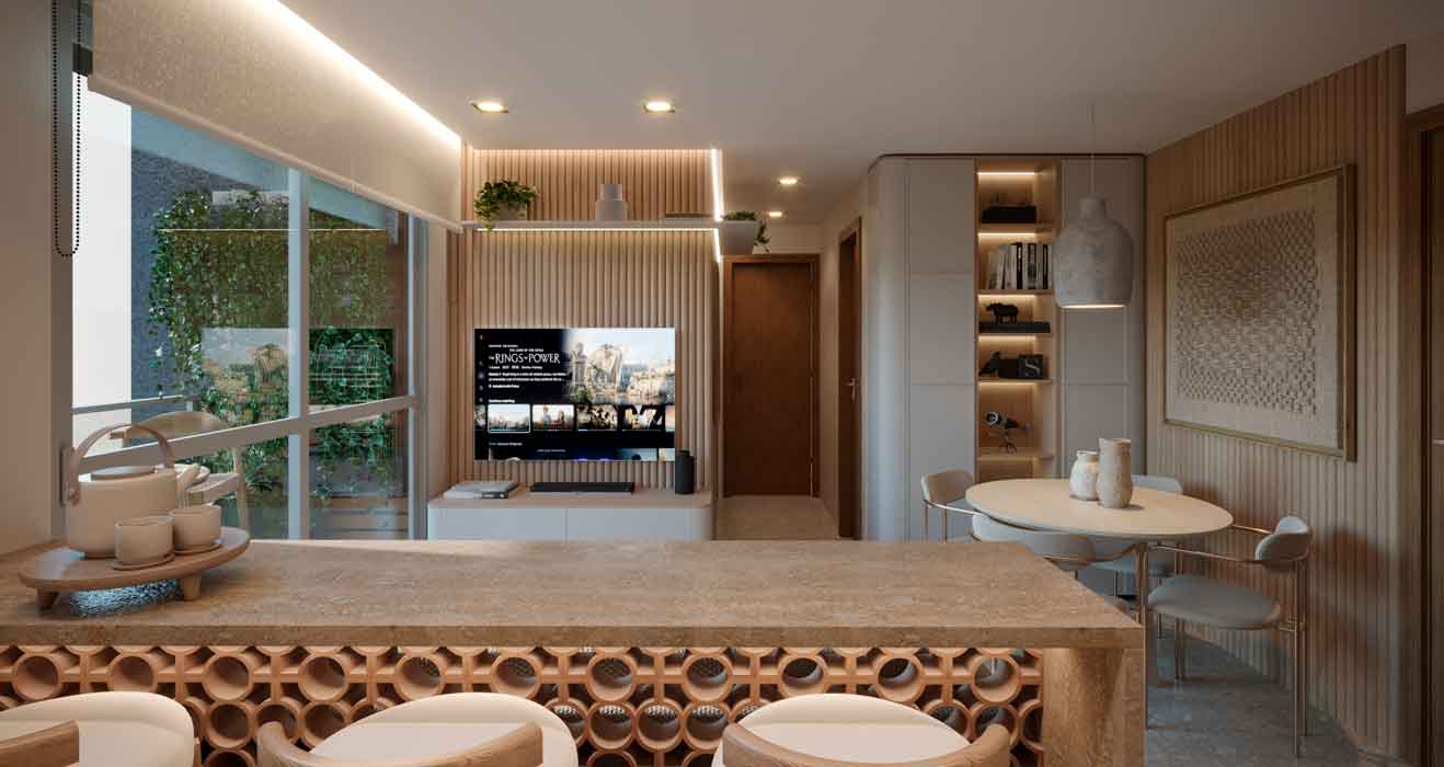 • Cozinha integrada ao living
